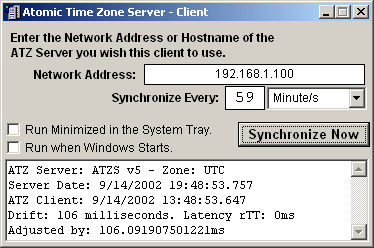 Randomize Atomic Time Servers - This checkbox controls random server selection according to your region. When enabled, ATZ will automatically select your Atomic Time Zone Server each time it synchronizes. This is the default setting.